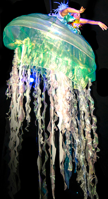 Up to 5 magical, colour-changing sea creatures dancing and spinning in the air, the